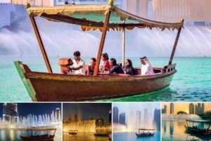 Enjoy Dubai Fountain’s stunning choreography aboard a traditional boat – the abra Take a relaxing cruise on this giant man-made lake and soak in the sights of Dubai’s iconic structures Watch the Burj Khalifa, Dubai Mall, Souk al Bahar, and the Palace, among others, float past you Enjoy the vibrant fountain show that features 6,000 lights and 22,000 gallons of water. This is the tallest and largest manmade fountain system in the entire world.